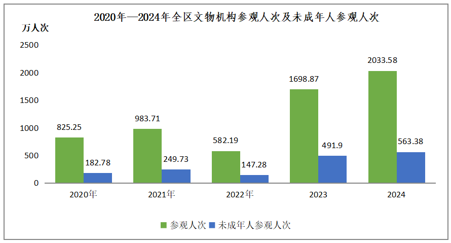 1.文物保护利用稳步推进。全面加强建设工程文物前置审查工作,联合交通运输、自然资源等部门出台加强建设工程用地文物保护、文物保护协作机制等文件。秦直道遗址遭破坏整改工作取得成效。有序推进第四次全国文物普查工作,复核文物遗址点20789处,调查新发现文物遗址点1218处。围绕中华文明探源工程和“考古中国”重大项目,完成考古发掘项目40余项,元宝山红山文化积石冢考古发掘取得重大收获,是我区目前唯一一处南方北圆、南坛北冢的红山文化晚期建筑遗存。公布全区第三批不可移动革命文物名录,签订陕甘(陕甘宁)片区革命文物保护利用合作协议。16家博物馆晋位升级,内蒙古博物院荣获2024年“全国最具创新力博物馆”。推出“北疆印迹——中华文明特性展”等精品展览140余个,“中国画、画文物——内蒙古采风创作作品展”成功举办,“黄河从草原上流过——鄂尔多斯历史文化陈列”入选全国十大陈列展览精品金奖。博物馆热持续升温,推出“博物馆之夜”等系列活动,接待人数突破2000万人次。成功举办第十届“博博会”。严厉打击文物犯罪,举办“北疆护宝——内蒙古打击文物犯罪成果汇报展”,立案文物犯罪案件33起,抓获犯罪嫌疑人100人。2024年末,全区共有全国重点文物保护单位149处,自治区级文物保护单位578处。